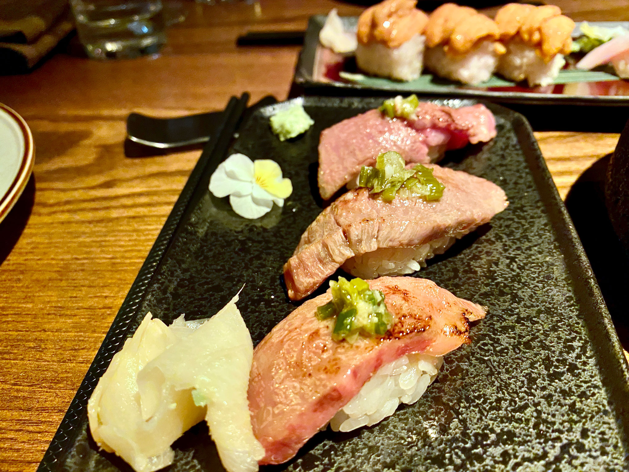 The A5 Wagyu Nigiri was unfortunately a little over-torched, which made it the only disappointment aside from the two dishes that were changed not to our liking.