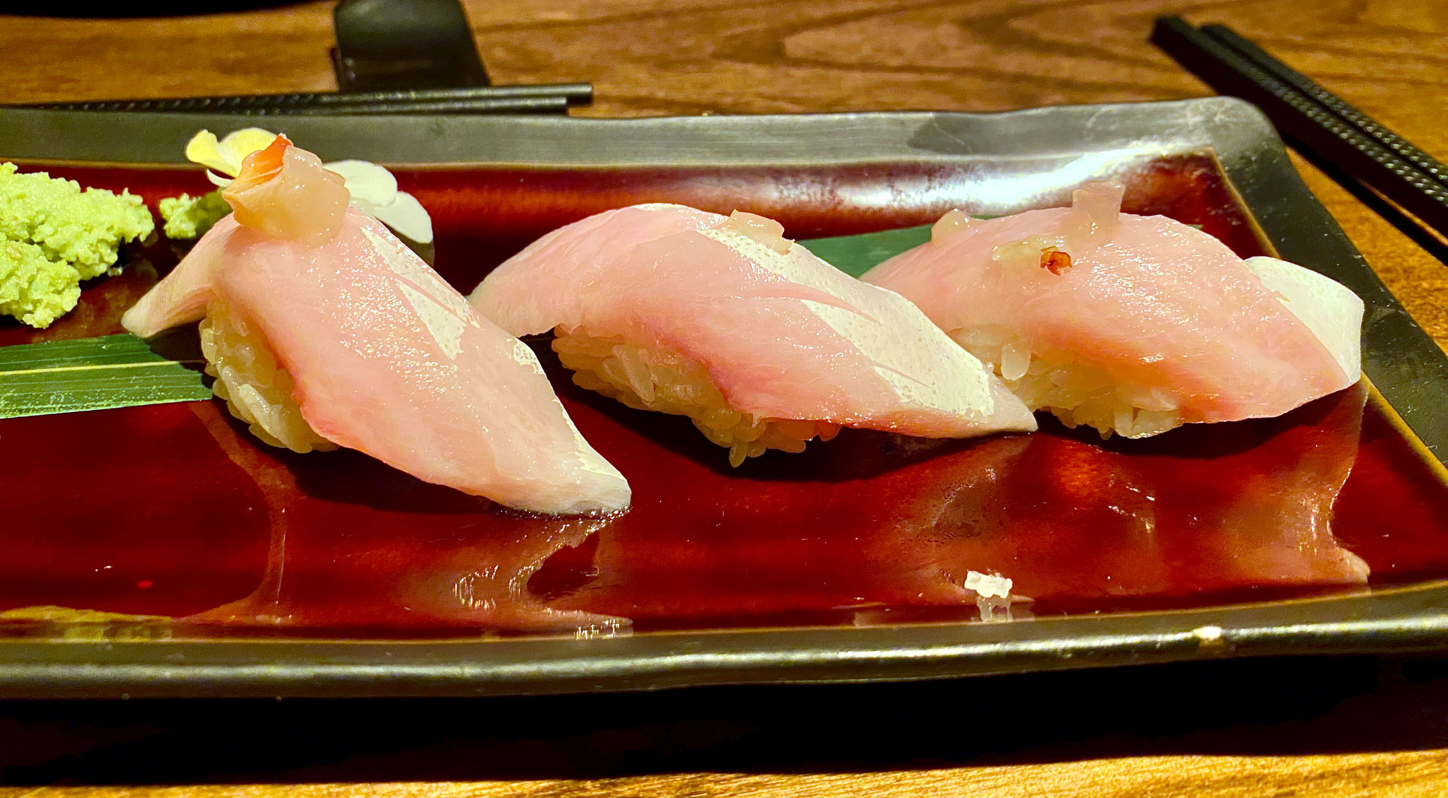We had 10 of the 12 items from this section with the Hokkaido scallop done both ways. For our first sashimi platter, we let the chef choose for us and we had the Chutoro, Otoro, Gulf Snapper, Hamachi, Bluefin, and King Salmon. This is sashimi done at the highest level. It’s all bursting with flavor and melts in your mouth.