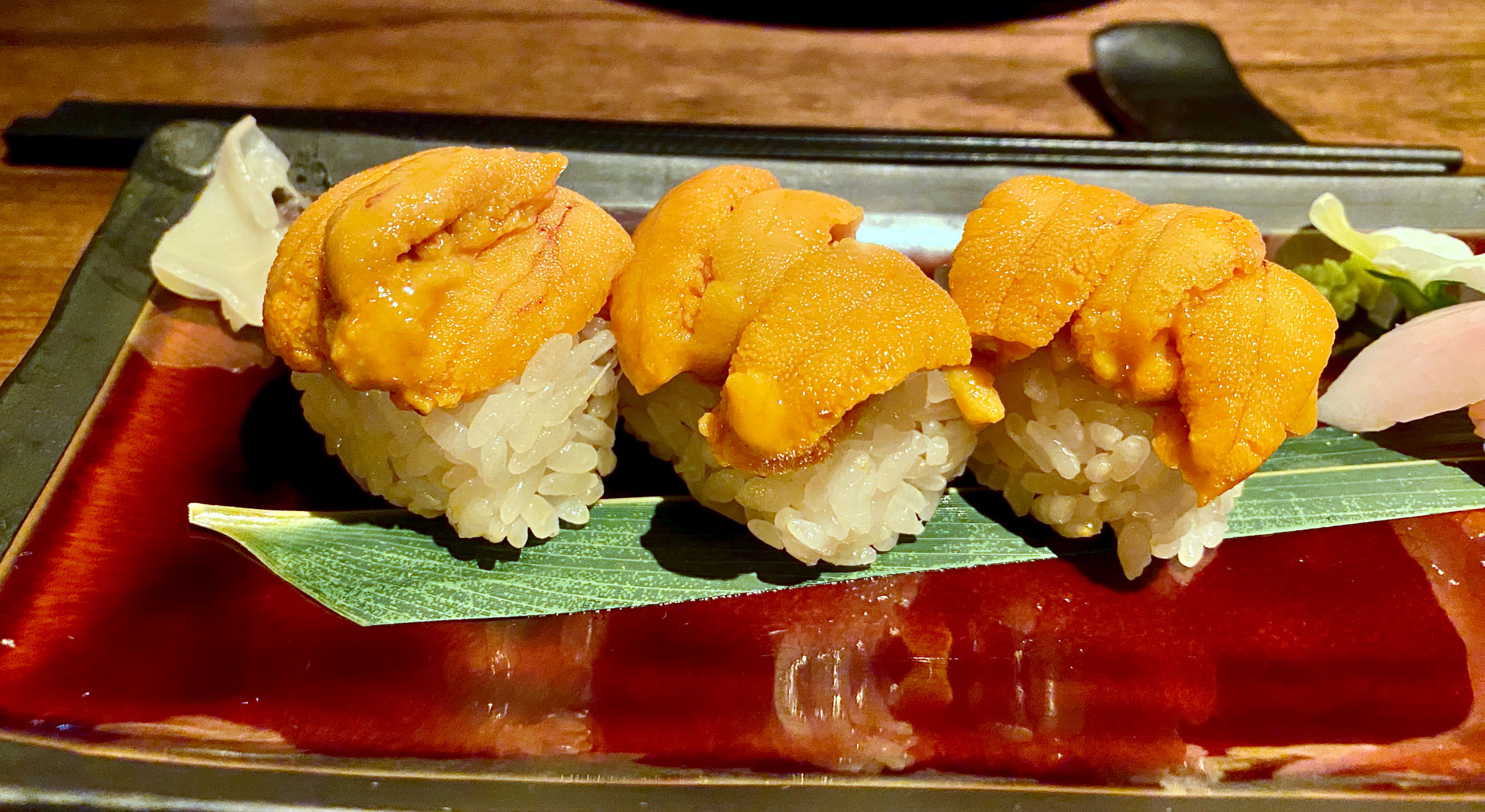 Hokkaido uni is prized for its exceptional sweetness and buttery texture, melting effortlessly on the palate. It is widely regarded as the finest in the world, and I agree. Uni also comes from Santa Barbara and Maine, but I recognized that this was from Hokkaido right away, and it was confirmed later. It had to be checked since Isu also sources uni from California when they can’t get Japanese.